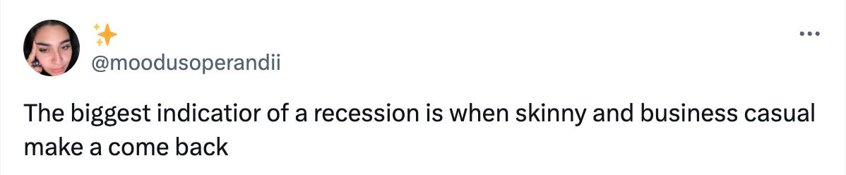 The biggest indicator of a recession is when skinny and business casual make a comeback